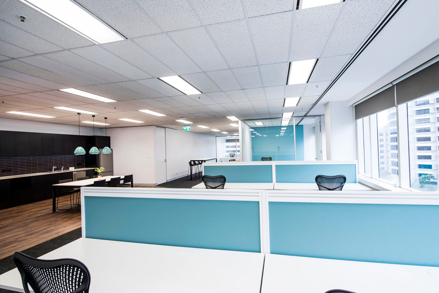 Ryder Projects seamlessly managed and completed the fit out for this colourful and vibrant office on St George’s Terrace to our usual high standards. A key feature of this space was the unique feature lighting we installed throughout the different zones, and kitchen’s joinery and flooring.